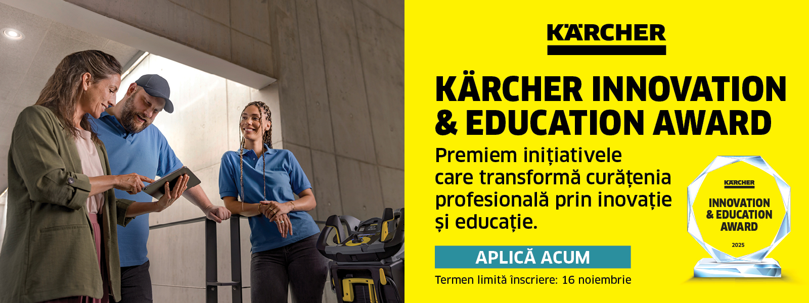 Kärcher România, membru activ al asociației noastre, lansează Innovation & Education Award, o competiție care recunoaște și premiază inițiativele remarcabile în curățenia profesională – fie ele inovatoare sau orientate spre educație și dezvoltarea echipelor.