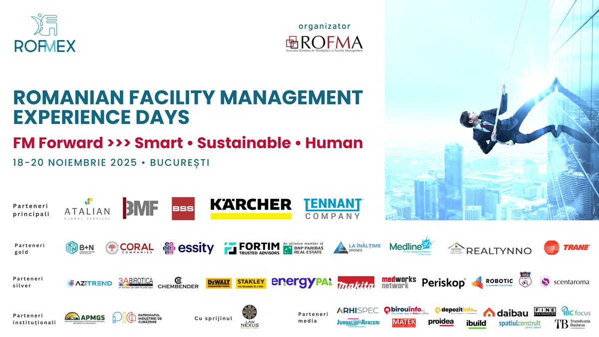 În perioada 18–20 noiembrie 2025, la București, va avea loc o nouă ediție a ROFMEX – Romanian Facility Management Experience Days, cel mai important eveniment dedicat profesioniștilor din domeniile Facility Management, Property Management și Workplace Management.