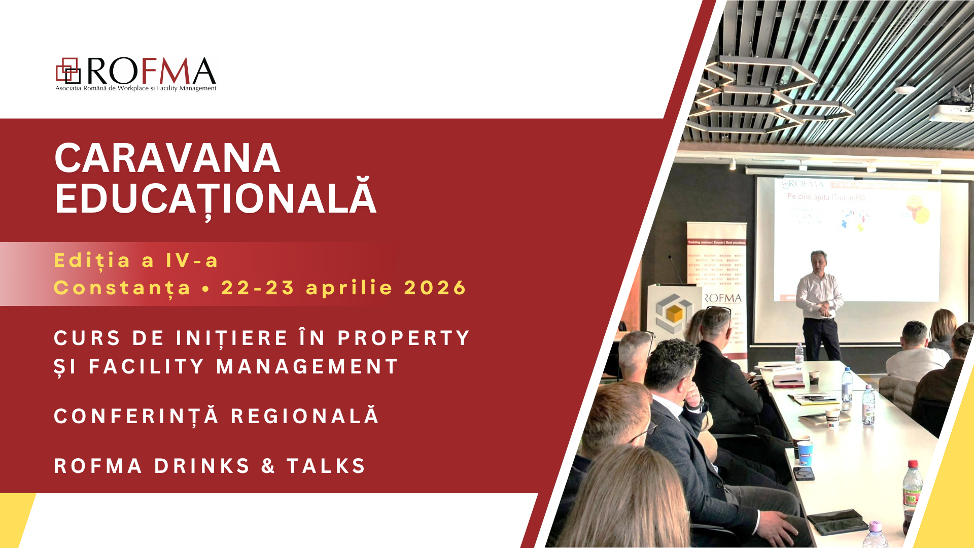 Caravana Educațională ROFMA aduce în prim-plan piața locală printr-un format integrat. Pe lângă conferința dedicată dezbaterilor din industrie, programul include și Cursul de inițiere în property & facility management, conceput pentru a oferi o bază solidă de cunoștințe și pentru a susține dezvoltarea noii generații de profesioniști.